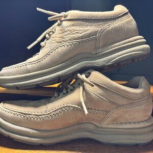 Excellent pair of boys size 5 tan Rockport shoes. They look like they we're worn, maybe tried on and walked around a little. The bottoms and inside are very clean.