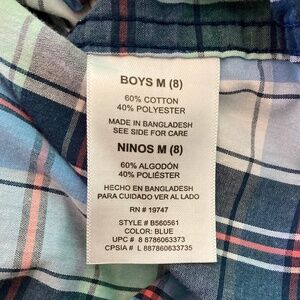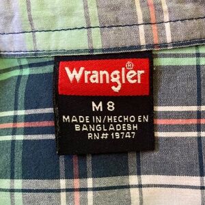 Boys size 8 Wrangler blue and green plaid short sleeved button up shirt
