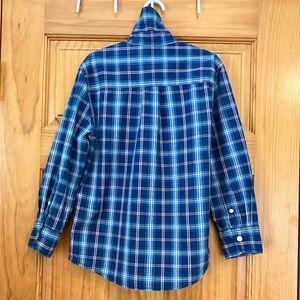 Boys size small J. Khaki long-sleeved blue plaid button down dress shirt