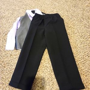 Boys suit outfit includes pants, long sleeve button up light purple, vest. Like new, worn once. Size 4t