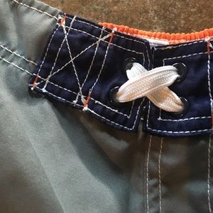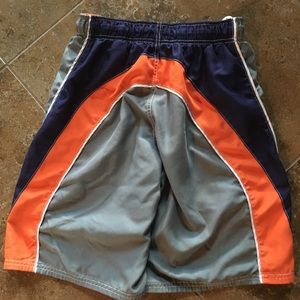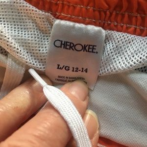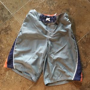 Boys swim trunks. Youth 12-14, Cherokee brand. Grey, orange, blue & white. My son grows so fast he barley wears his clothes. No-smoking, No-pet home. No trades.