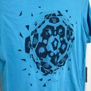 Boys top with soccer inspired graphics. Top in nice blue. I don’t recall this top being ever worn. See pictures for details.