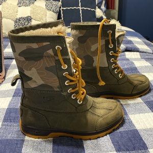 Leather ugg snow boot army green used. Good condition still have a lot left in them