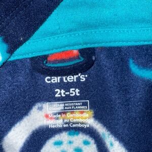 This Boys' Bathrobe is a fun and cozy dinosaur-themed kids' robe, perfect for boys aged 2T-5T. Made from 100% polyester fleece, it features a tie closure, 3/4 sleeves, and a vibrant multicolor animal print design. The robe is ideal for all seasons and is sure to keep your little one warm and stylish while lounging at home. A great addition to any boy's sleepwear collection, this robe is both functional and entertaining with its playful dinosaur theme. Perfect for imaginative play or relaxing evenings, this Carter's brand robe is a must-have for young boys.