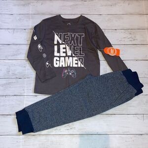 Boys Long Sleeve Cotton Shirt & Fleece Jogger Pants 2-Piece Set Size XS (4/5)