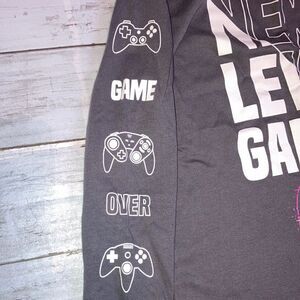 Top is long sleeved cotton pullover tie dye graphic shirt and fleece jogger pants.