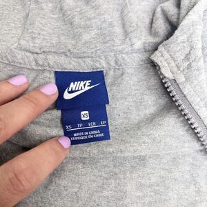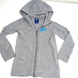 Boys Nike zip up hoodie, gray with blue Nike symbol. Size XS.