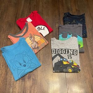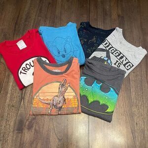 Get ready for your little boy to look stylish in this multicolored T-shirt lot. Perfect for any occasion, this lot includes shirts from various top brands and is available in size XS. The lot features shirts with different characters to choose from, so your child can showcase their unique personality. These shirts are perfect for boys aged 4 and up and are made from high-quality materials that guarantee durability. So if you're looking for a great deal on a lot of shirts that will keep your child looking fashionable, this lot is definitely worth considering. Place your bid now and grab this opportunity to add something special to your child's wardrobe.