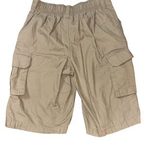 Comfortable and stylish tan cargo shorts perfect for casual outings. Features multiple pockets for convenience.