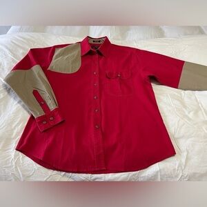 Boyt Harness Company Womens L Hunting Shirt Long Sleeve Red W\Tan Shoulder Guard