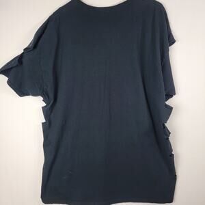 This is in distressed condition. There are bleach splatters and cuts up the sides as well as, cut on the sleeves. Please see photos.