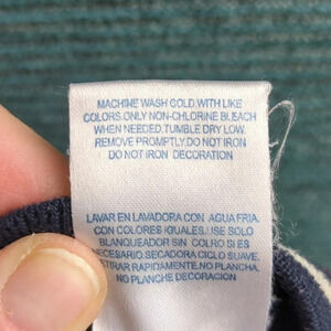 Navy blue fleece body, with white faux leather sleeves, and red and white accents. Also has white faux leather trim on pockets.