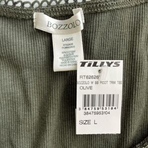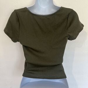 Bozollo Women’s Olive Green Picot Trim Tee Cropped Large New