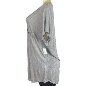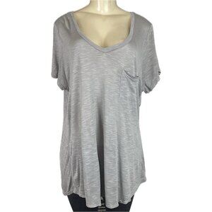 Bozzolo 2X Juniors + Gray Heather V-Neck Curved Hemline Short Sleeve Pocket Tee