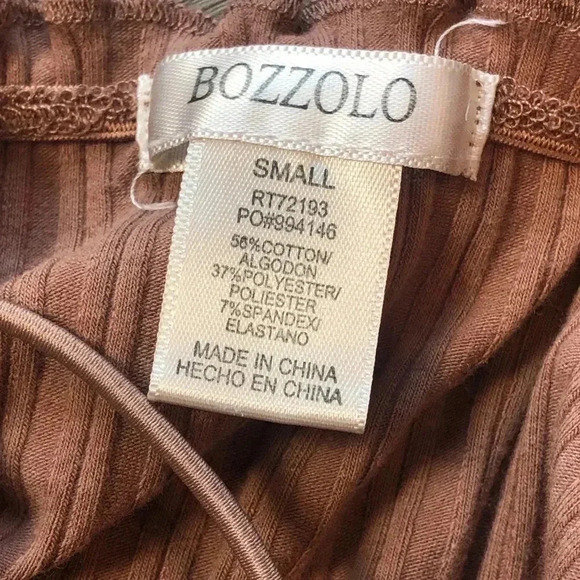 Elevate your wardrobe with this stylish Bozzolo crop top bandeau. The sleeveless top features spaghetti straps and ruffle accents, adding a touch of femininity to the solid brown color. The pullover closure makes it easy to wear, while the hand wash only care instructions ensure it stays looking great for years to come. Perfect for travel or casual occasions, this top is made from a blend of polyester, spandex, and cotton and is a regular fit for size small. The cropped style and ruffle hems make it a trendy addition to any outfit, and it's suitable for all seasons. Made in China, this top is a must-have for any fashion-forward woman.