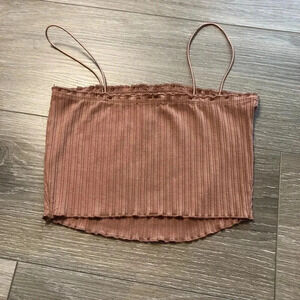 Bozzolo Brown Crop Top Bandeau With Straps Ruffle Hems Size Small