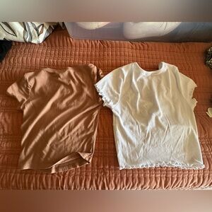 Set of two Bozzolo crop tops. One in brown with a V-neck. One in white with a tie front.