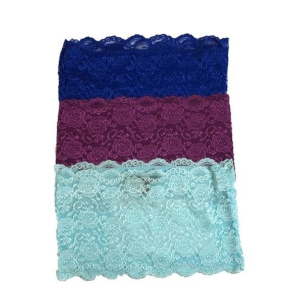 • Floral Lace/Lined Front/Sheer Lace Back/Scallop Trim/Lightweight/Bundle Includes Three (1 Dark Royal/1 Mint Green/1 Violet)