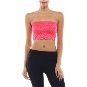 Bozzolo Bundle Lace Strapless Bandeau Top Scalloped Hem Stretchy Floral Design
