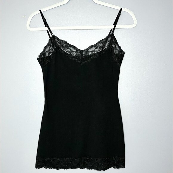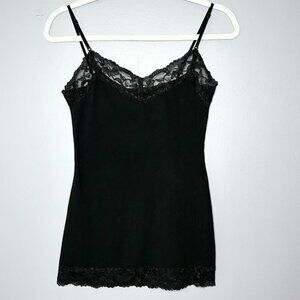 Bozzolo Camisole Tank Top Womens Large Black Lace Trim Soft Stretch Y2K Style