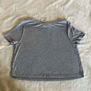 This Bozzolo crop top features a classic crew neckline and short sleeves, crafted in a soft gray fabric with a subtle heathered texture. Its cropped style offers a relaxed fit, making it a versatile addition to any casual wardrobe.
