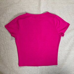 Bozzolo | Pink Ribbed Crewneck Cropped Tee | Large