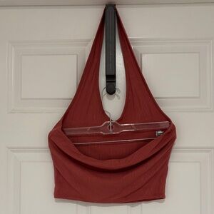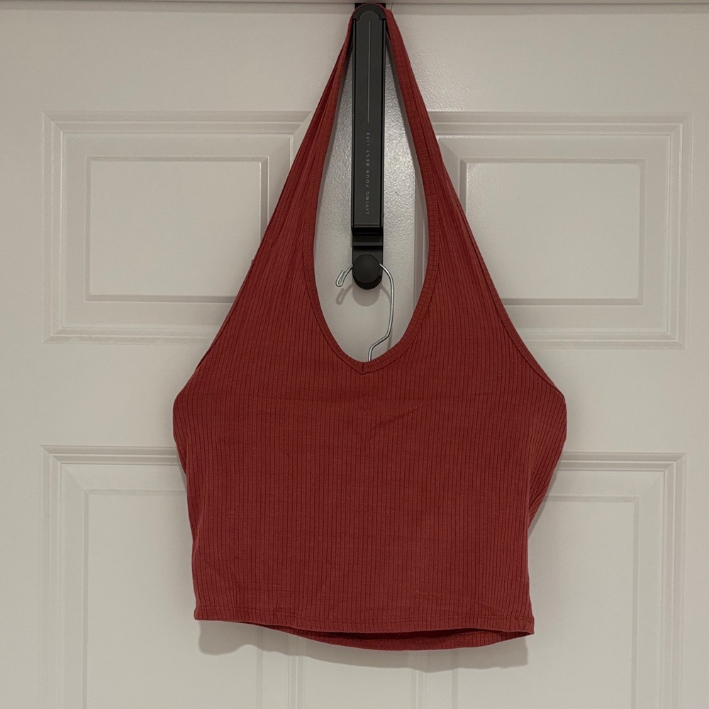 Chic ribbed top in a warm rust shade. Ideal for layering or wearing alone.