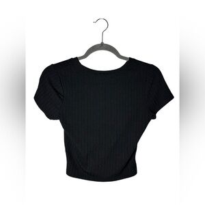 Bozzolo Women’s Black Ribbed Crop Top Small – Short Sleeve Stretch Tee