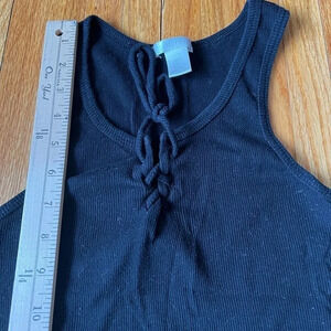 Bozzolo black tank, size large. In good used condition, no rips tears or stains. Quarter lace up front.