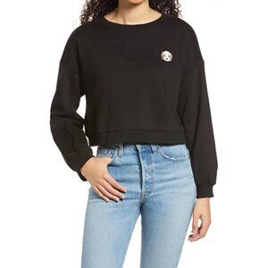 Slouchy dropped shoulders frame this cropped cotton-blend sweatshirt designed with a playful pooch patch.