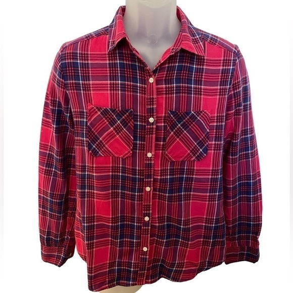 BP Brass Plum Nordstrom Red Plaid Button Down Shirt Women M Medium