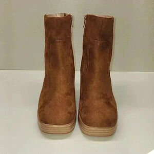 A square toe and chunky flared heel lend contemporary charm to a retro-chic platform bootie with a velvety-soft upper and side-zip closure for easy on/off.