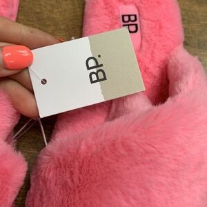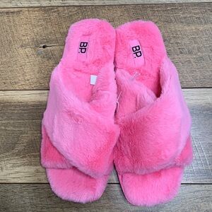 Bp. Mae Cross Strap Faux Fur Slipper Pink Prism size XL