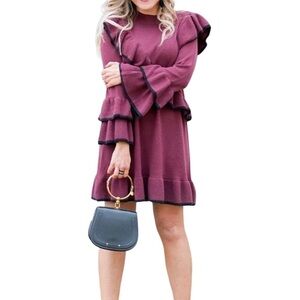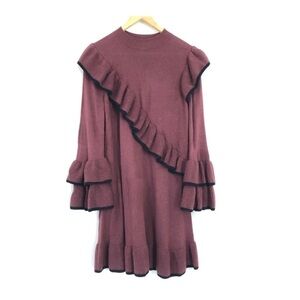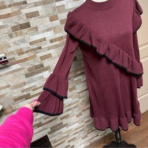Bp NWT LONG SLEEVE MAROON SWEATER DRESS WITH RUFFLE DETAILS - SIZE XS