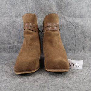 Used Bp Shoes Womens 8.5 Ankle Boot Fashion Leather Stack Heel Buckle Strap Zip Brown