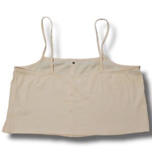Ribbed crop top with spaghetti straps. Buttons are not functional and just for decoration.