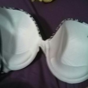 The bra is a padded bra. Its white with black pink and gray on it. Never been worn and is in good condition.
