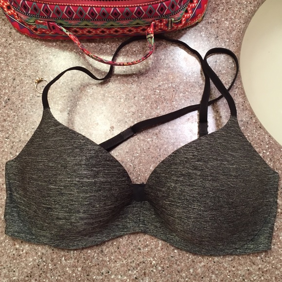 Never worn besides to try on. Feels like memory foam. So soft. Straps are able to cross if wanted. Black gray and white