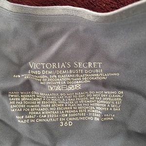 Lined demi bra. Great shape aside from some normal wear unraveling on the inside band on both sides as pictured. I’ve just never had time to glue the material back into place. Otherwise, this bra is super comfy.