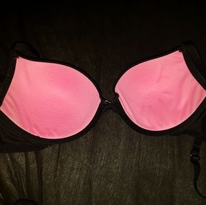 Black with pink cup lining and tiny bow between cups. Worn but not in bad shape and will be hand-washed before delivered. No padding/pushup