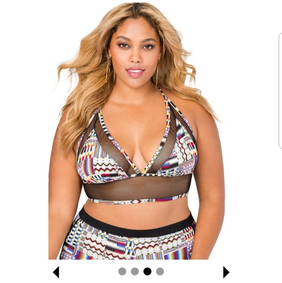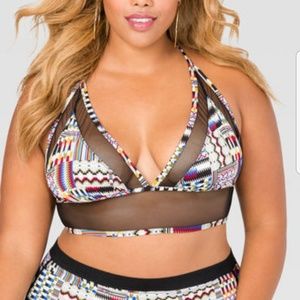 Ready. Set. Fall in LOVE! This plus size bralette features a bold geo print and mesh inserts. Rock it with the matching panty for a perfect look.