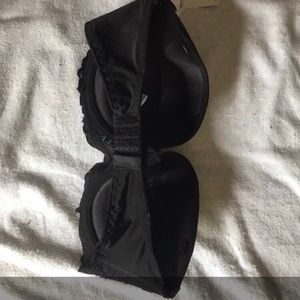 Black strapless push-up bra with lace