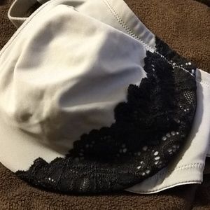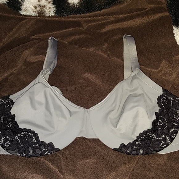 Small bra grey with black lace. Tag is missing but dies not show much wear. Inside is soft flannel like material. Not sure on size but measures 34 so probably a C cup.