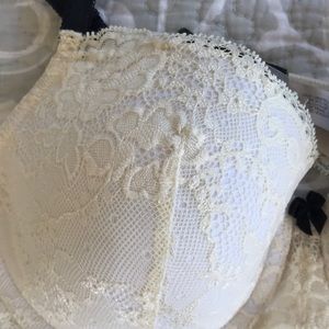 From the Dream Angels Collection. A beautiful, romantic black and cream, lightly padded bra.