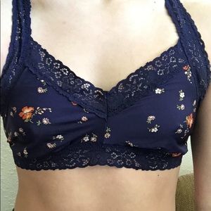 Very comfortable and Stretchy material, dark blue with cute flower pattern, lace straps,fits about every boob size