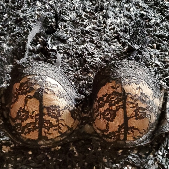 Black lace trimmed with tan on the breast. New couldn't wear it