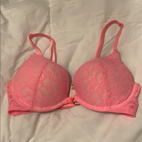 VS neon pink soft lace push up bra