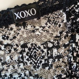 XOXO bra size extra large it’s 90% nylon and 10% spandex