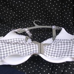 Underwire support cacique bra criscross in the back color is grey and white plaid