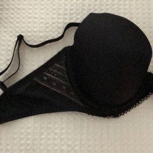 Donna Karan size 34D black bra with lace on the side and lace under the cup.